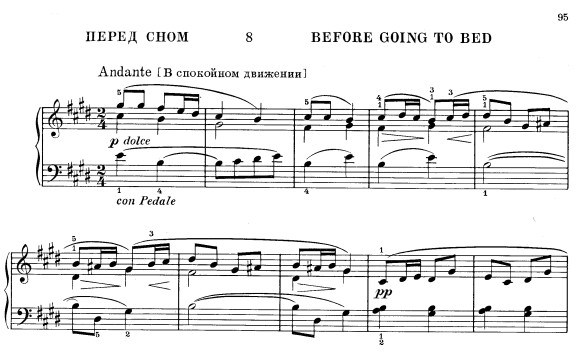 Пьеса Г. Свиридова «Перед сном» можем дать для работы ученику с целью научиться играть мелодию, слышать полифонию, дифференцировать фактуру, слышать продолжение звука для хорошей кантилены, разораться в колорите русской музыки.