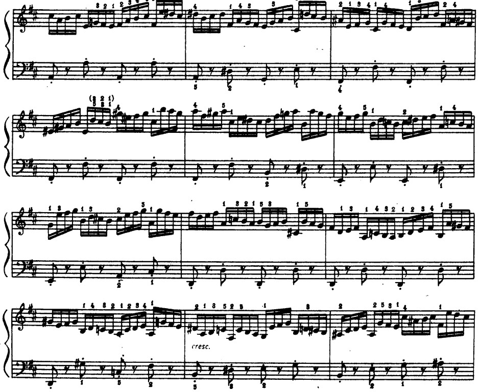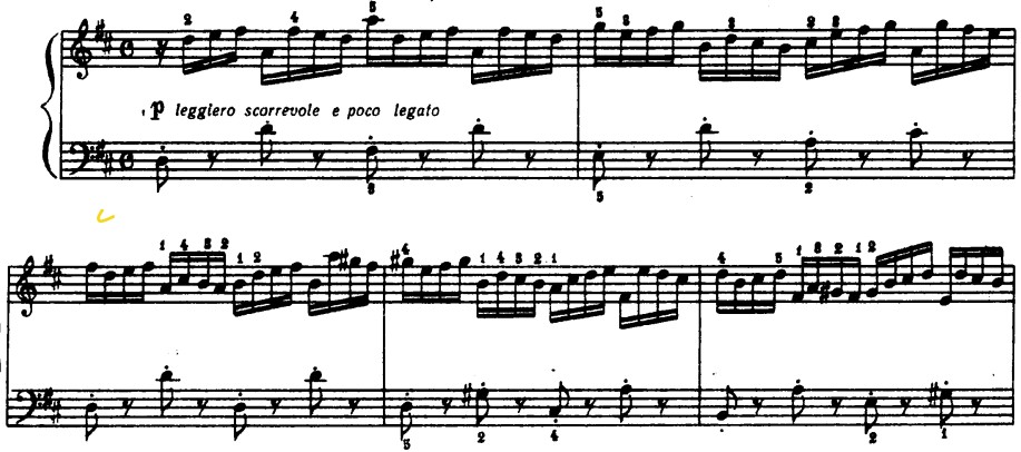 В прелюдии ре мажор ажурность мелодического рисунка исключает бездумно моторный темп, здесь есть многозадачность интонационная: