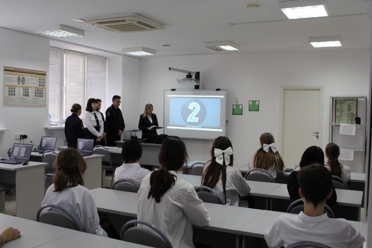 Профпробу "Полицейский" в мастерской "Правоохранительная деятельность" прошли обучающиеся МБОУ "Гимназия №" г. Салавата и МБОУ "Лицей №8" г. Салавата, приняли участие в практических мероприятиях по программе: профориентационная экскурсия: «Моё рабочее место», выполнение кейса: «Место преступления», выполнение кейса: «Составление фоторобота преступника», участие в практикуме по проведению дактилоскопирования, демонстрация итогового результата, продукта.