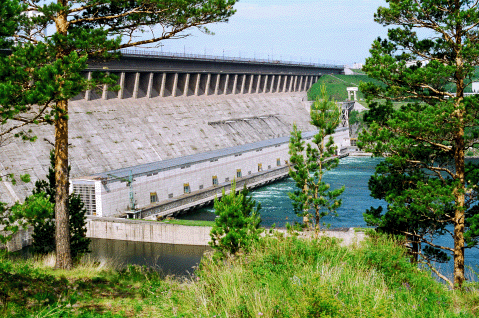 Братское водохранилище относится к числу крупнейших искусственных водоёмов на земном шаре. Братское водохранилище отличается от всех существующих водохранилищ большой изрезанностью береговой линии и глубиной (110 м). Общая длина подпорного фронта Братского гидроузла – 5,1 км. Из них 1,4 км – длина бетонной плотины. По плотине проложена железнодорожная линия и автодорога.