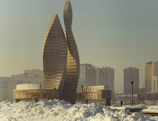 Он вошел в жизнь города событием необыкновенным, ярким, точно песня о богатырях. Это было в день 30-летия Победы. Мемориал открывали на глазах десятков тысяч братчан. Когда подходишь к Мемориалу со стороны бульвара имени 30-летия Победы, взору открываются два величественных лепестка пламени, застывших в бетоне. По бокам справа и слева, к ним почти примыкают две бетонные серповидные стелы. На них смонтированы плиты из мрамора. На каждой плите фамилии и инициалы, отлитые из меди. Нельзя не обратить внимания на барельефы, высеченные внутри стел. На внешней стороне читаем слова: