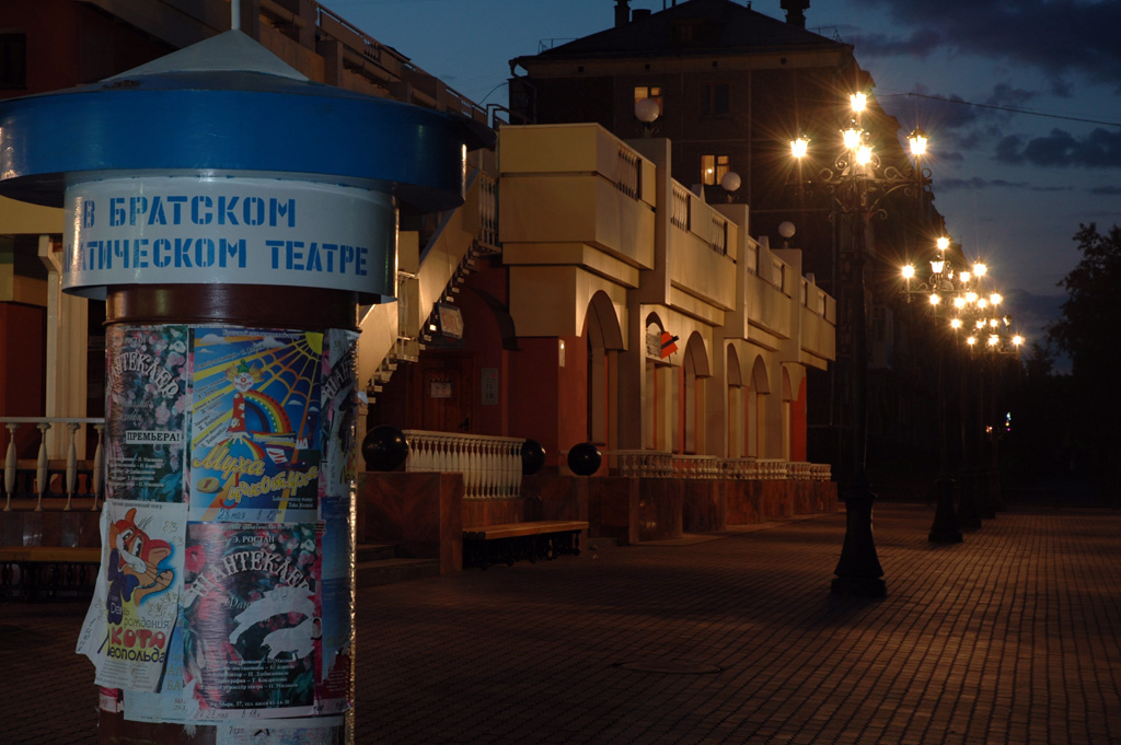 Муниципальное учреждение культуры «Драматический театр города Братска» – самый молодой профессиональный театр Сибири. Ведет свою историю с февраля 1986 года. Первые десять лет располагался в приспособленном помещении, в поселке Падун. Это были плодотворные творческие годы, годы становления и обретения лица. В это время было поставлено множество замечательных спектаклей, труппа выезжала на гастроли и фестивали в Москву, Пермь, Иркутск, где завоевала любовь и признательность зрителей, а также получила высокую оценку критиков. Однако этот интересный и многообещающий период сменился периодом огромных трудностей – театр переехал в центр города и стал работать под крышей театрально-концертного центра «Братск–Арт». Финансовые проблемы, состояние бездомности не раз ставили театр на грань закрытия. Но, к счастью, в 2003 году театр получил в подарок отреставрированное здание в центре города. Некогда неприглядный кинотеатр «Россия» предстал перед братчанами в виде архитектурного шедевра, полностью соответствующего своему предназначению: быть местом культурного просвещения и душевного отдыха. Сегодня в репертуаре театра замечательные спектакли, поставленные по пьесам русских и зарубежных классиков и современных драматургов. Среди них «Алые паруса» А. Грин, «Дядя Ваня» А. Чехов, «Старший сын» А. Вампилов, «Антигона» Ж. Ануй и другие. Каждая встреча с Братским драматическим – это всегда полифония актерской игры, режиссерских экспериментов, глубокое содержание спектаклей. Театр в отличной творческой форме, участвует в гастролях и фестивалях. В 2007 году – успешные гастроли, а также участие в театральном фестивале современной драматургии им. А. Вампилова в Иркутске. В 2008 году – гастроли в Красноярске и участие в областном фестивале детских и юношеских спектаклей «Синяя птица» в Иркутске. 2009 г. - Братский Драмтеатр вновь становится участником фестиваля современной драматургии им. Вампилова в г. Иркутске. У Братского драматического театра большие творческие планы и серьезные амбиции. Театр живет, дышит, продолжая радовать своего зрителя новыми спектаклями. |