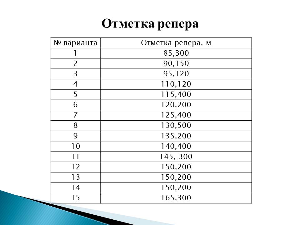 5.2. Вычисление черных отметок, проектной отметки и рабочих отметок.