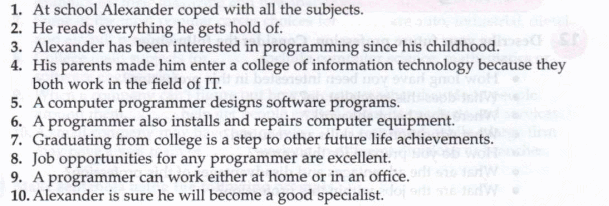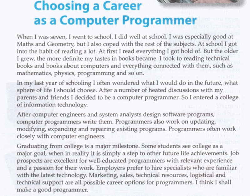 T:-You see the world of jobs is wide and you can choose any profession you want. Don’t forget you should honestly evaluate your good and bad qualities; think if this job is suitable for you and what you can do to achieve your aim.