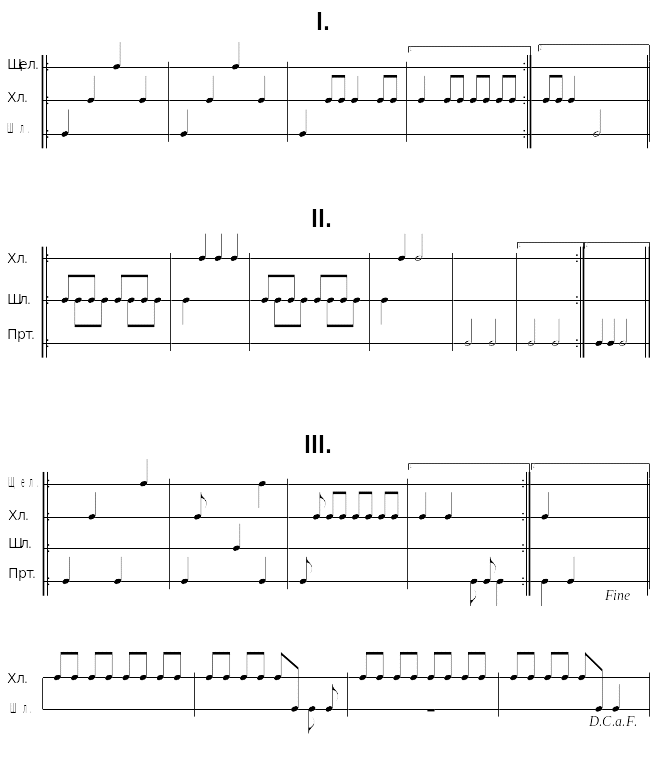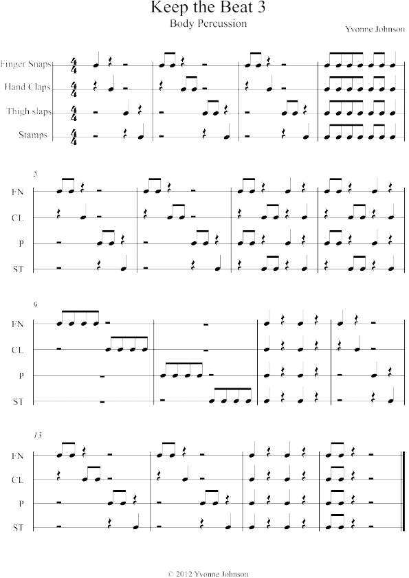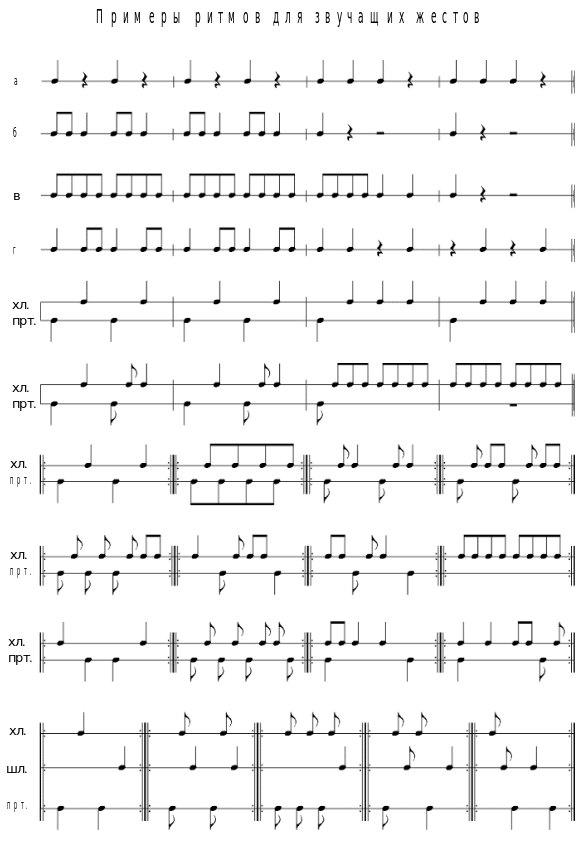 Ведущий:В XX веке в поиске нового звучания, новых технологий, методик музыканты пришли к пониманию, что собственное тело само по себе представляет отличный музыкальный инструмент с различными оттенками звучания. Это не только самый доступный инструмент, но и, в то же время, самый тонкий и сложный. Палитра звуков, извлекаемых им практически безгранична.