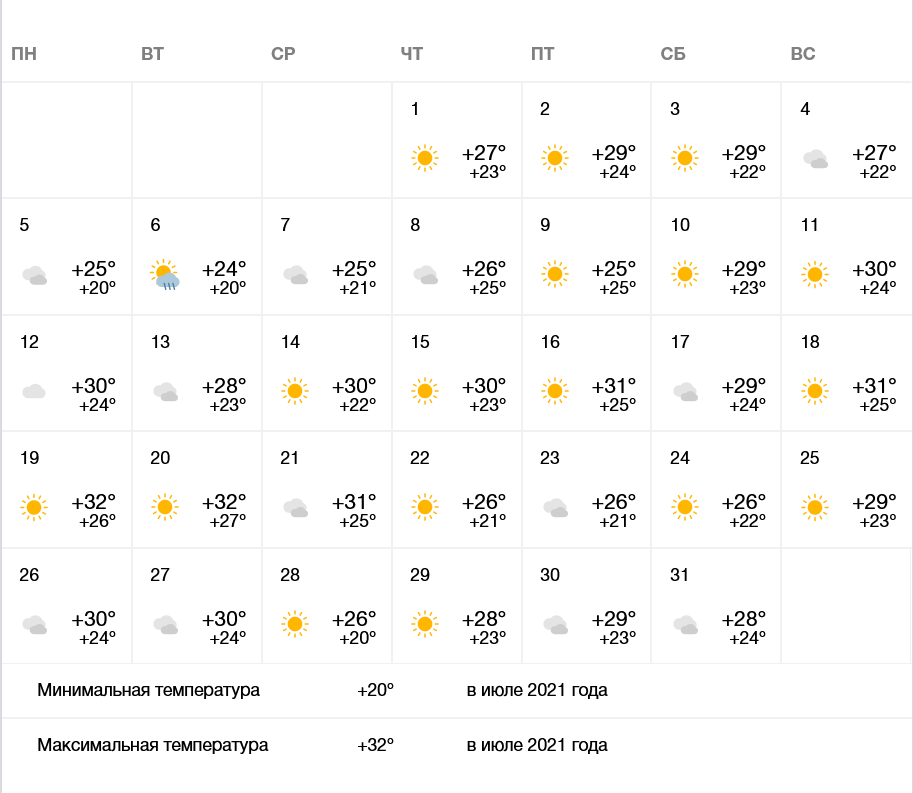 Текст задания | Летом в Ейске очень жарко. Прогноз погоды в июле 2021 года представлен ниже.