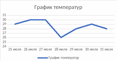 Вопрос 1 | Нарисуйте график изменения температуры воздуха в дни отдыха семьи Ивановых (с 25 по 31 июля). |