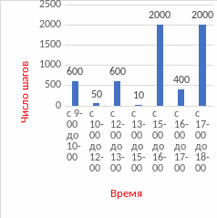 Текст задания | Известно, что каждому человеку рекомендовано проходить не менее 10000 шагов в день. Мама с дочкой решили отследить число совершенных за один день шагов. При окончательном подсчете они ориентируются на следующие данные: 200 шагов – до столовой от номера, 400 шагов – от столовой до моря, 2000 шагов – от номера до парка аттракционов. Мама составила диаграмму количества шагов в зависимости от времени дня (участки движения, которые можно считать значимыми). Без учета незначительной прогулки перед сном по территории пансионата.