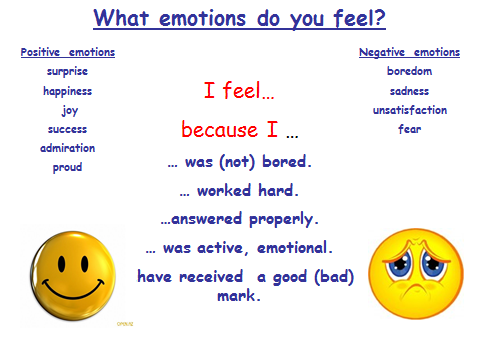 Пример №1 Конкретные эмоции, чувства от урока, с проговариванием на английском языке, использованием табличек, сделанными на уроках технологии по моей просьбе.
