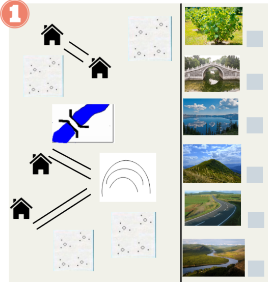 Далее происходит введение новой и актуализация известной лексики ипервичное знакомство с топографическими знаками с помощью задания на сопоставление картинок и знаков. Опять детям нужно подумать и самостоятельно соотнести их, а затем озвучить.