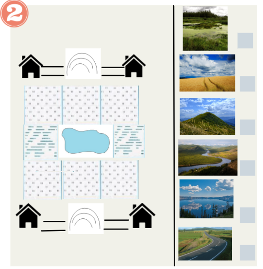 Дальнейшая тренировка направлена на узнавание плана по описанию. Учащимся предлагается прочитать описание движения по плану местности и выбрать соответствующее изображение плана. Здесь помимо новых лексических единиц, включены предлоги направления.