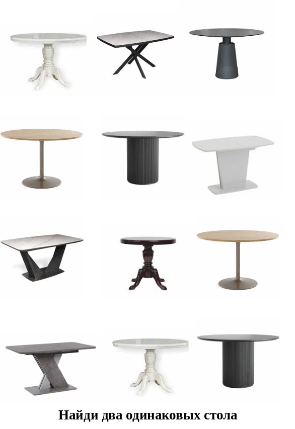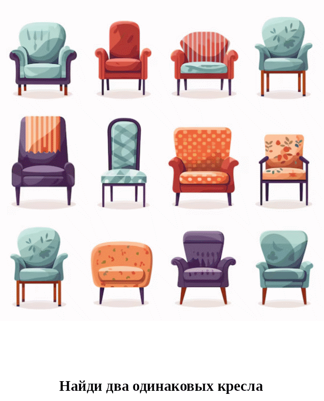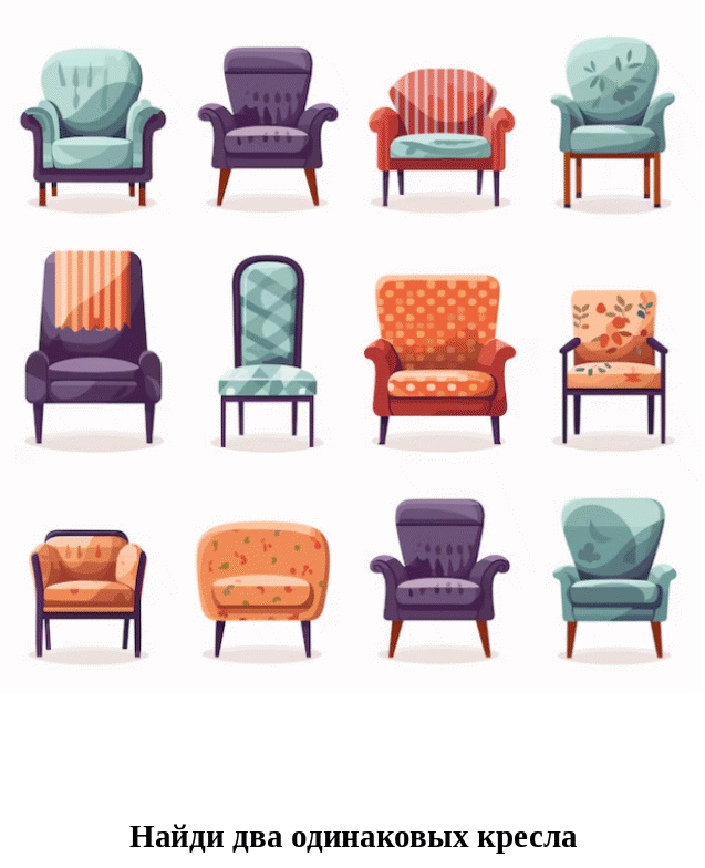 Задание 2: Посмотрите внимательно и найдите два одинаковых (стола, кресла).