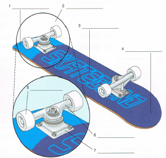 1. Naming | 5 мин 5 мин 10 мин 5 мин 10 мин 8 мин 2 мин | 1.Warming-up (wow-effect): выясняю, кто из ребят катается на скейтборде, какие успехи, какие рекорды (ребята с удовольствием делятся своим опытом). Предупреждаю, что сегодня мы узнаем, из каких комплектующих состоит скейтборд, научимся его собирать по инструкции. 2.Listening: слушаем рекорды (самый высокий и самый длинный прыжок) знаменитого скейтбордиста.Навыки активного слушания. 3.Vocabulary/speaking: перед обучающимися диаграмма скейтборда с пронумерованными частями, подписываем части, слушаем, проверяем, называем.Умение работать информацией на иностранном языке.