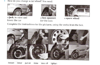3. Ordering | 3 мин 20 мин 20 мин 2 мин | 1.Warming-up (wow-effect): спрашиваю, попадали ли обучающиеся в ситуацию, когда было необходимо поменять колесо (в каждой группе есть такие, видели, как меняют автомобильные колеса или даже сами меняли велосипедное колесо) сообщаю ребятам, что нам следует разработать инструкцию по замене автомобильного колеса. 2. Рассматриваем фотографии в рабочей тетради, составляем инструкции.
