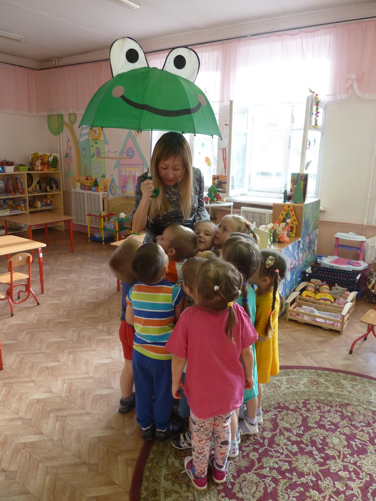 Зонтик ведет их к осени, так как ребята выполнили все задания.