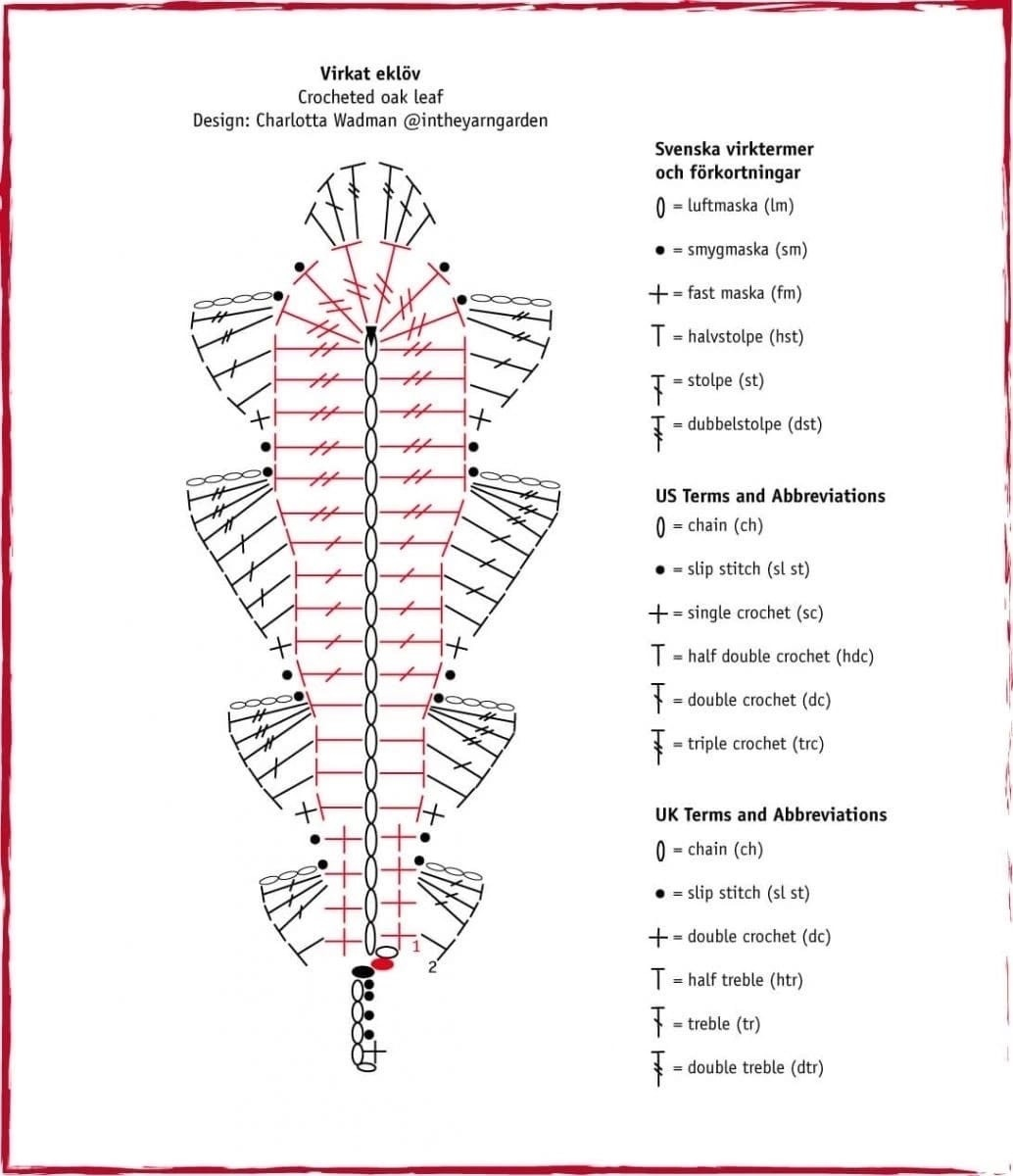 Схема вязания желудя и листочка крючком