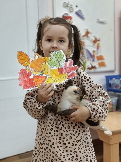 Украшение группы: листочки осенние, рисование на окнах (зонтик, белочка, ежик), растяжка.