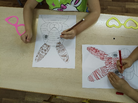 Рисование штрихами с элементами аппликации «Модный зайка» | Обучение ритмичному нанесению штриховки, отработка легкости движения и свободного перемещения руки по всему листку. Задачи:
