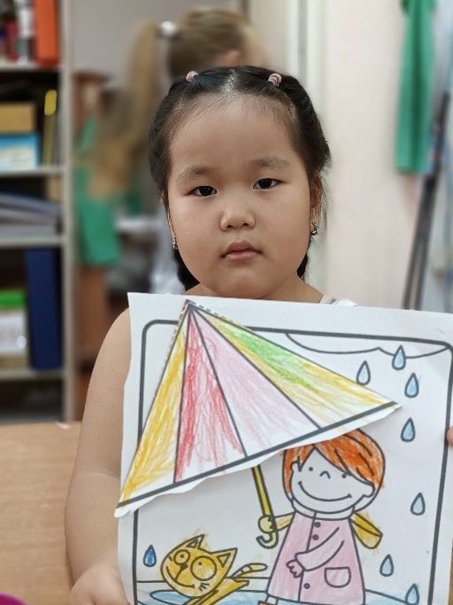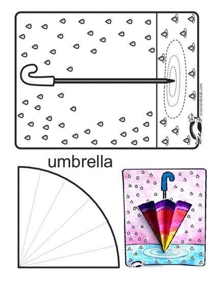 | Шаблон зонтика, клей, карандаши, краски и кисти, ножницы. Приложение 4 Пример: