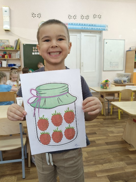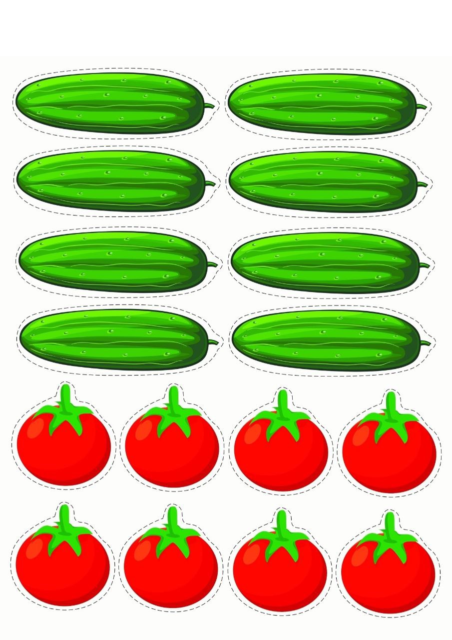 | Шаблоны банок, грибов, малины, клубники, огурцов, помидоров, ножницы, клей. Приложение 6 Пример: