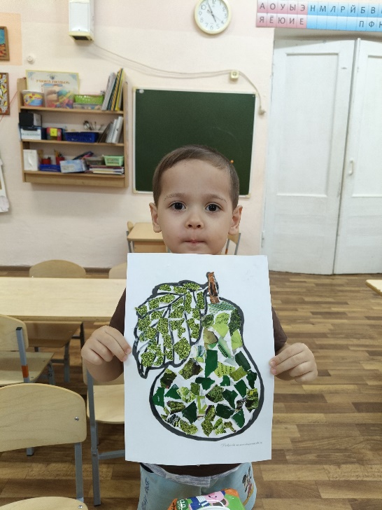 Обрывная аппликация «Груша» | Совершенствовать развитие эстетического восприятия окружающего мира, воспитание художественного вкуса Задачи: