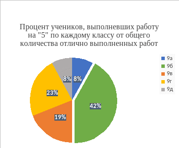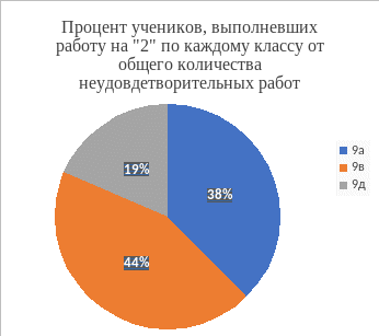 На удовлетворительную оценку написали работу ученики 9а, 9в и 9д класса; результаты данных классов показывают недостаточную динамику улучшения выполнения работ