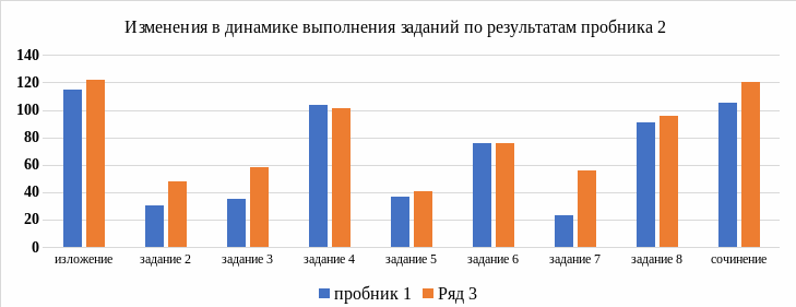 По результатам написания 2 пробника, можно выделить следующие задания, динамика выполнения которых заметно улучшилась: