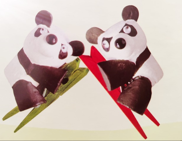 9. Готового панду посадить на прищепку и зафиксировать клеем.