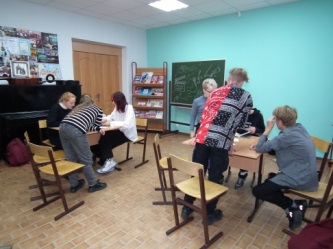 ,занятия - участие в конкурсах авторских песен разного уровня , стихов с последующим анализом , обсуждением работ и выступлений, участие и организация творческих вечеров, занятие-встреча с коллективами - клубы авторской песни Маймаксы, клуб «Вертикаль», хором ветеранов «Соломбальские сударушки» ,