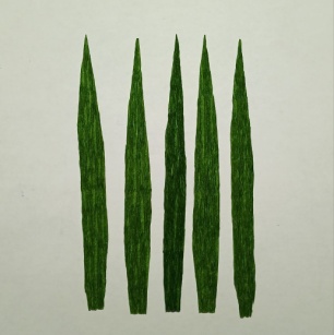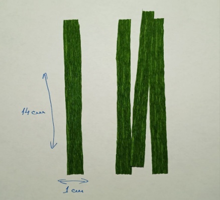 Нарезаем полоски для листьев из зеленой бумаги высота 14 см. ширина 1см.