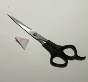 5. вырезаем и прорезаем серединку.Также отрезаем кончик треугольника.