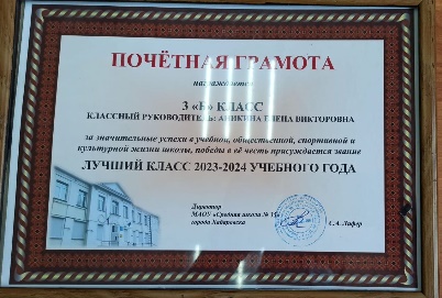 В 2022-2023 и 2023-2024 учебном году класс Елены Викторовны становился победителем школьного конкурса «Лучший класс».