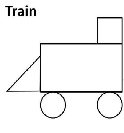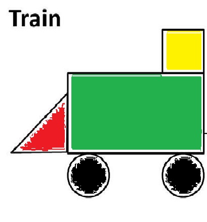 Детям предлагается изображение поездов различных по форме и по цвету. Необходимо выложить их из геометрических фигур.