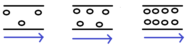 Учитель: посмотрите на рисунки на доске. Кружочками схематически представлены движущиеся электрические заряды. Как вы думаете, в каком проводнике сила тока больше?