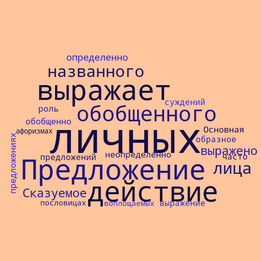 Предложение выражает действие или состояние, не связанное с лицом, предметом (деятелем). Грамматическая основа состоит из сказуемого. Предложения могут обозначать состояние природы, окружающей среды; состояние живого существа; эмоциональную или морально-этическую оценку действия, названного инфинитивом. Часто они употребляются в художественной речи).