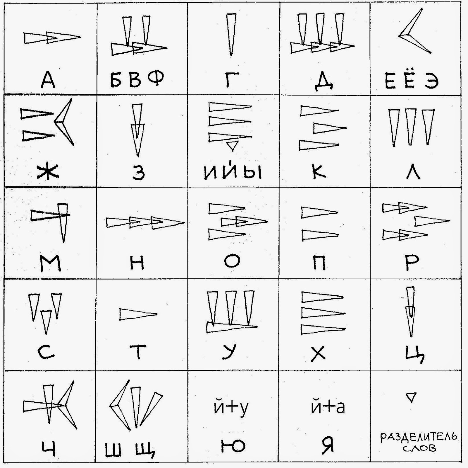 Рис. 1 Алфавит (обозначение символов) клинописи с русской транскрипцией