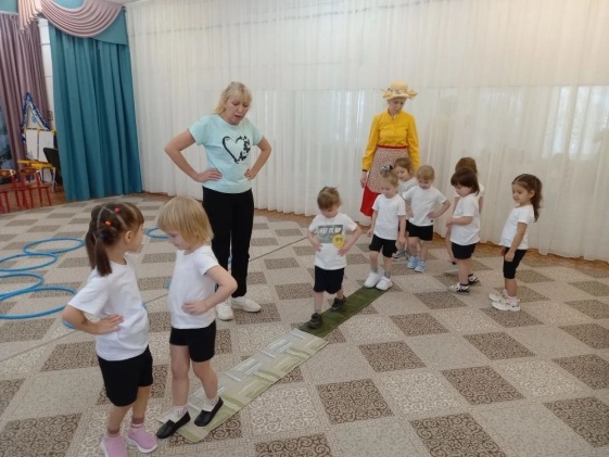 Ребята, впереди две дорожки широкая и узкая, предлагаю детям пройти по узкой дорожке на носочках, а по широкой обычным шагом.