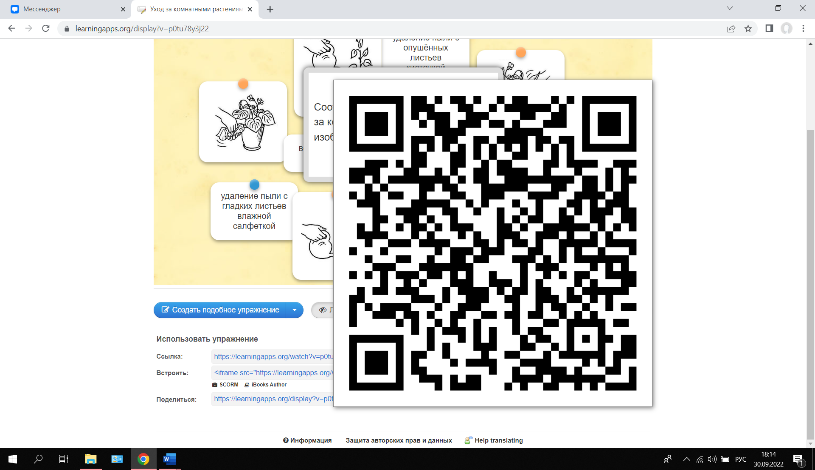2 задание (использование ЦОР). Ребята, чтобы комнатные растения всегда были здоровыми и красивыми, нужно правильно за ними ухаживать.И следующее задание будет посвящено именно уходу за комнатными растениями. Закреплять материал мы будем с помощью интерактивного задания на платформеLeauningApps. https://learningapps.org/watch?v=p0tu78y3j22