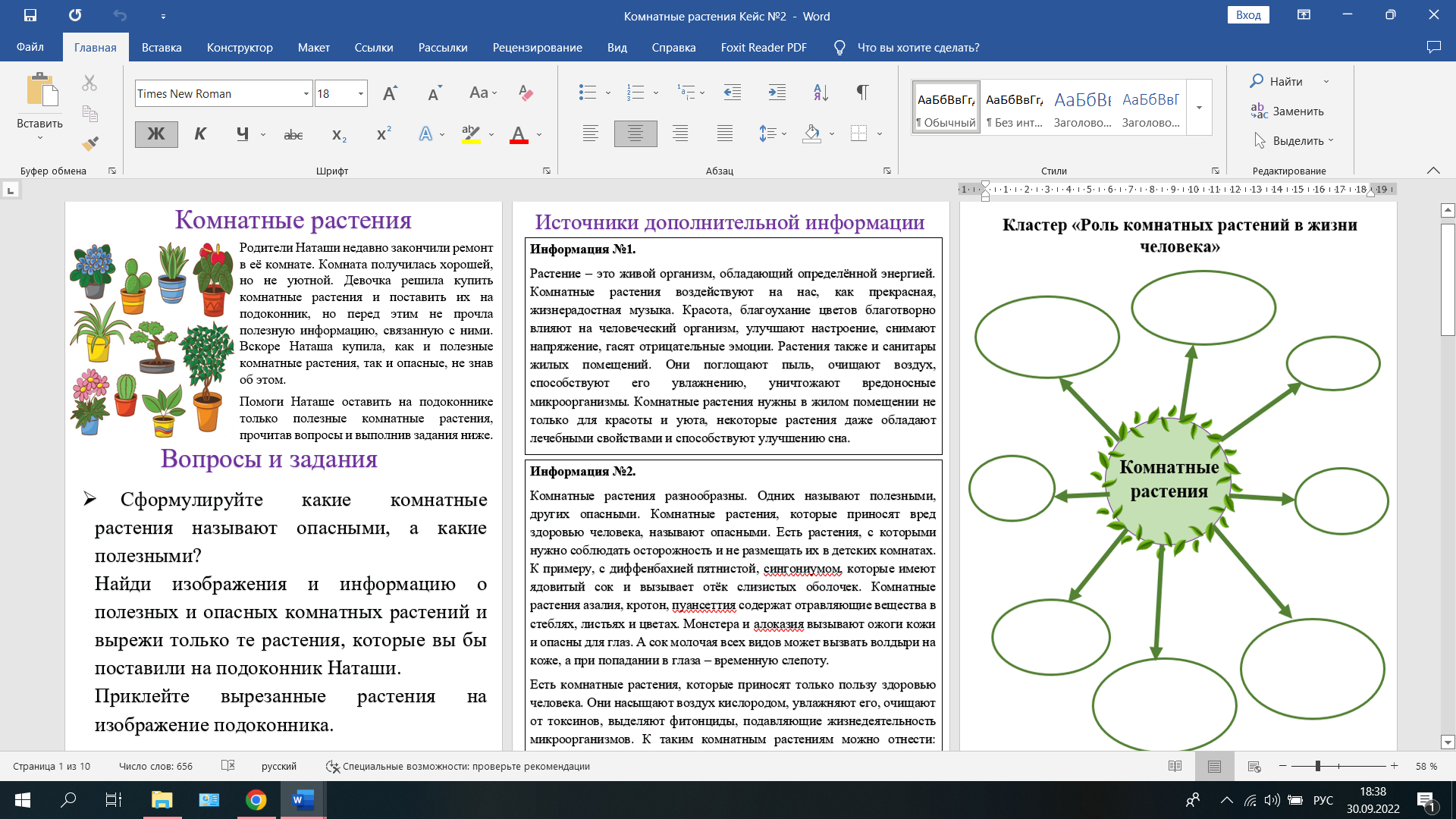 1 задание. Послушайте небольшую историю девочки Наташи.Родители Наташи недавно закончили ремонт в её комнате. Комната получилась хорошей, но не уютной. Девочка решила купить комнатные растения и поставить их на подоконник, но перед этим не прочла полезную информацию, связанную с ними. Вскоре Наташа купила, как и полезные комнатные растения, так и опасные, не знав об этом.