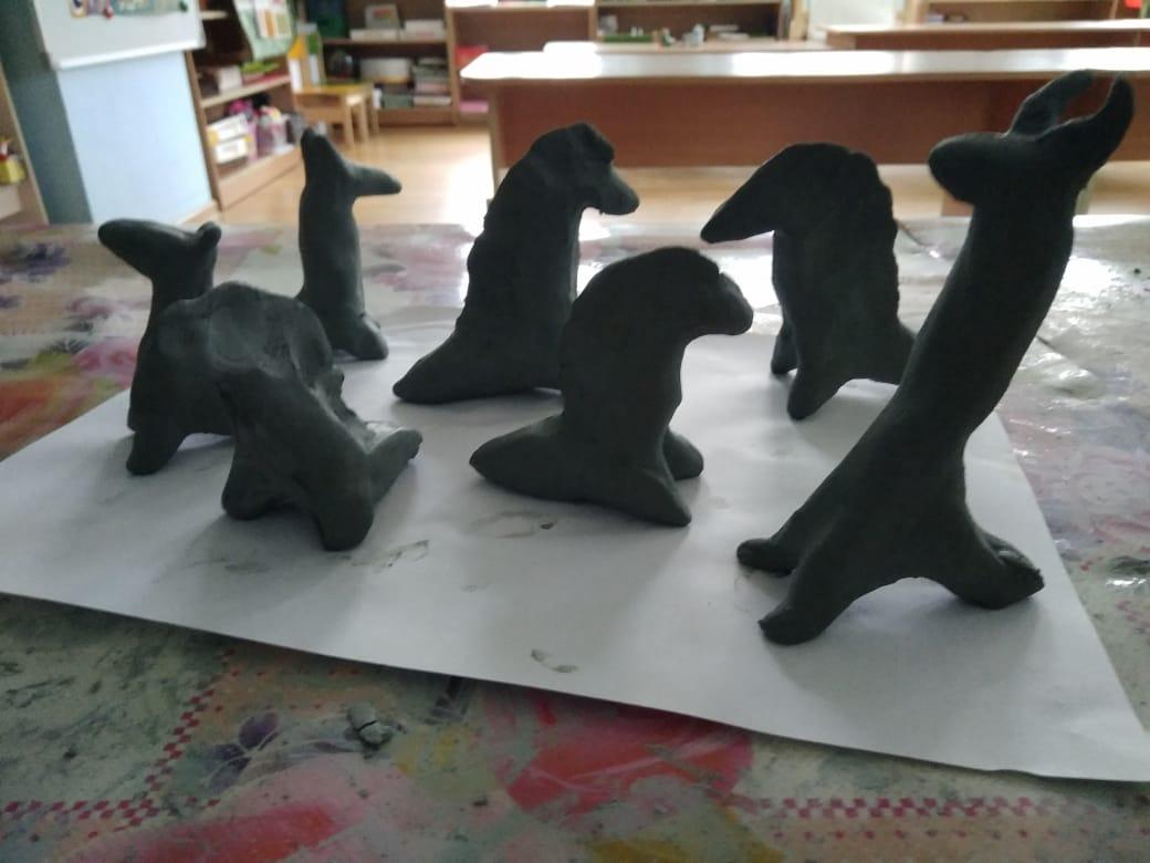 Ребята могут делать фигурку козленка или лошадки, выбирают сами.
