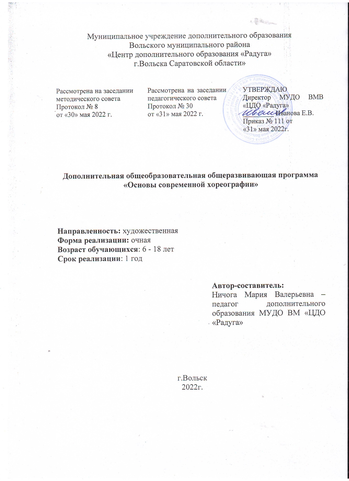 Дополнительная обещеобразовательная общеразвивающая программа «Основы современной хореографии»