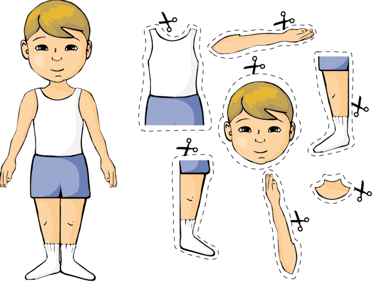 1. Формировать представления детей об основных частях тела человека.
