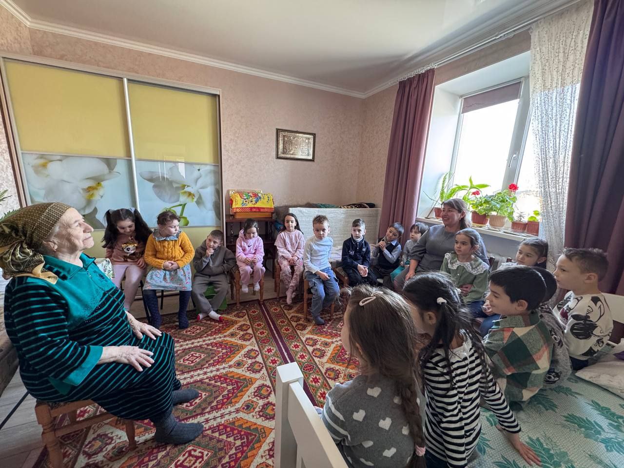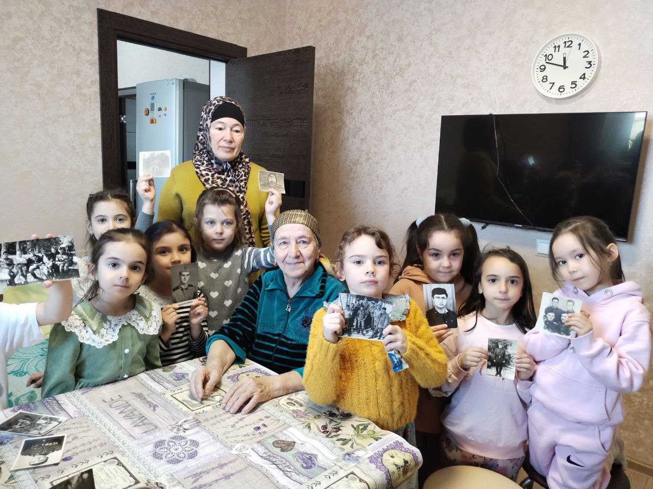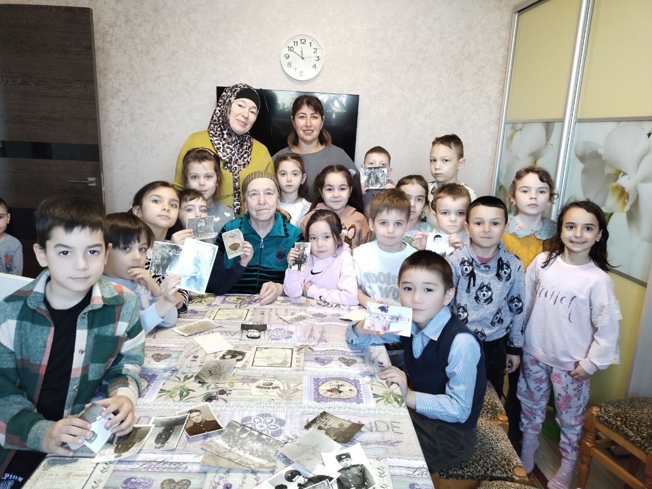 Ветеран встретила нас радостно и приветливо. Мы познакомились. Воспитатель напомнила им, что сегодня они будут журналистами, записывать рассказы и правдивые истории о непростых годах во время войны труженицы тыла.