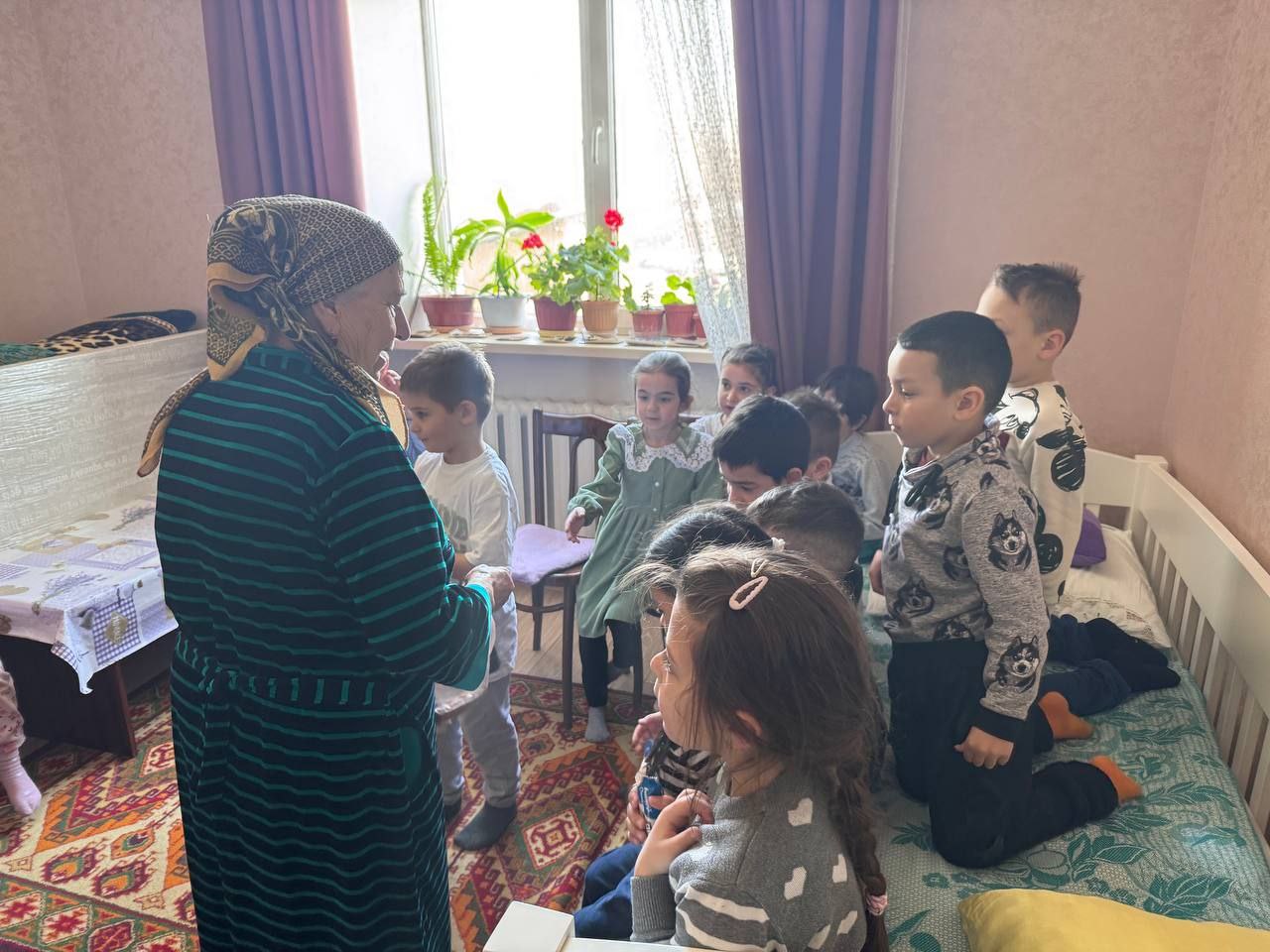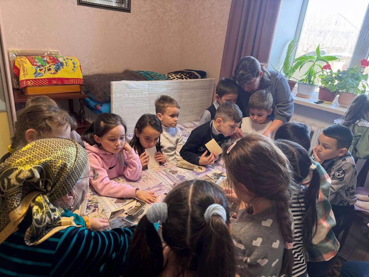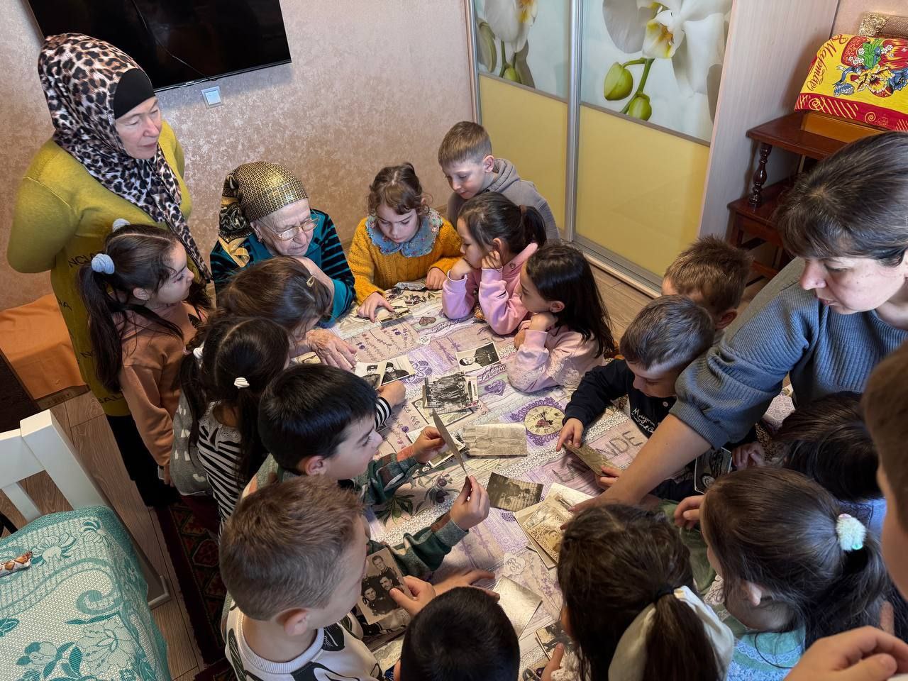 Ветеран встретила нас радостно и приветливо. Мы познакомились. Воспитатель напомнила им, что сегодня они будут журналистами, записывать рассказы и правдивые истории о непростых годах во время войны труженицы тыла.