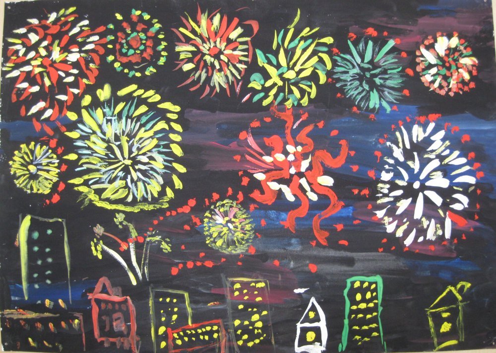 2. Рисование пальчиковыми красками на тему «Салют Победы»