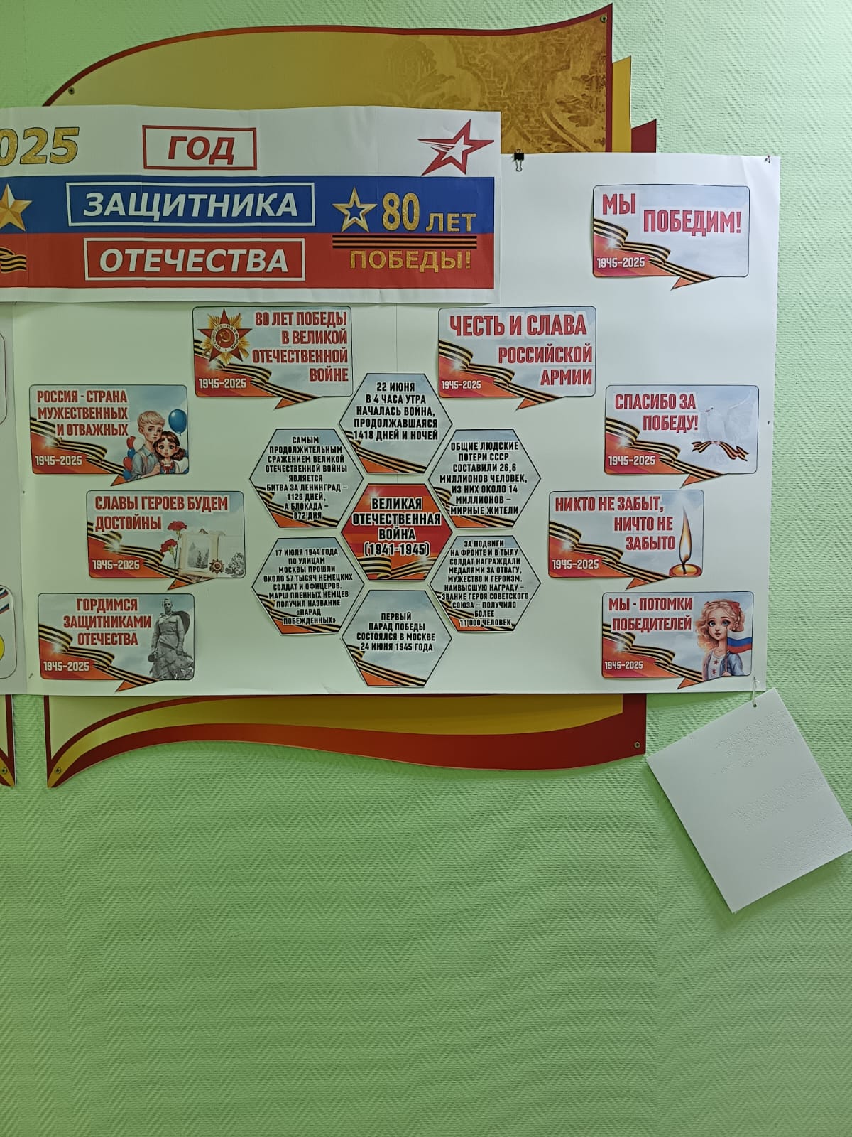12.12.2025 Информационный плакат "2025 год - год Защитника Отечества. 80 - летия Победы. Великая Отечественная война" Принять участие в этом конкурсе Описание конкурса Список всех конкурсов Маркина Светлана Викторовна ГКОУ КО "Мещовская школа- интернат" Конкурсная работа Свидетельство участника экспертного совета жюри Свидетельство можно заказать сразу, как Вы оставите не менее 3 объективных комментариев в этом разделе сайта. Узнать подробнее Военный парад Информационный плакат "2025 год - год Защитника Отечества. Славы героев будем достойны". У вас недостаточно прав для добавления комментариев.Чтобы оставлять комментарии, вам необходимо авторизоваться на сайте. Если у вас еще нет учетной записи на нашем сайте, предлагаем зарегистрироваться. Это займет не более 5 минут.