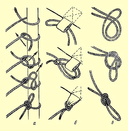Узлы, применяемые при установке палатки.