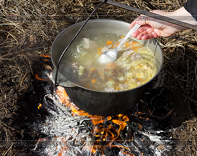 Ожоги обычно происходят на биваке в результате неосторожного обращения с костром либо общего беспорядка вокруг очага. Чаще всего это небольшие и неопасные ожоги: кто-нибудь взялся за горячую дужку ведра или, поправляя дрова, прикоснулся рукой к углям или пламени. Но могут быть ожоги и посерьезнее: скажем, вечером дежурные сняли с огня ведро с кипятком или кашей и отставили в сторону, а кто-то в темноте, не разглядев его, опрокинул себе на ноги. Могут ожоги произойти и от того, что вблизи огня начинает плавиться синтетическая ткань, например, если кто-то решил подсушить носки или брюки, не снимая их.