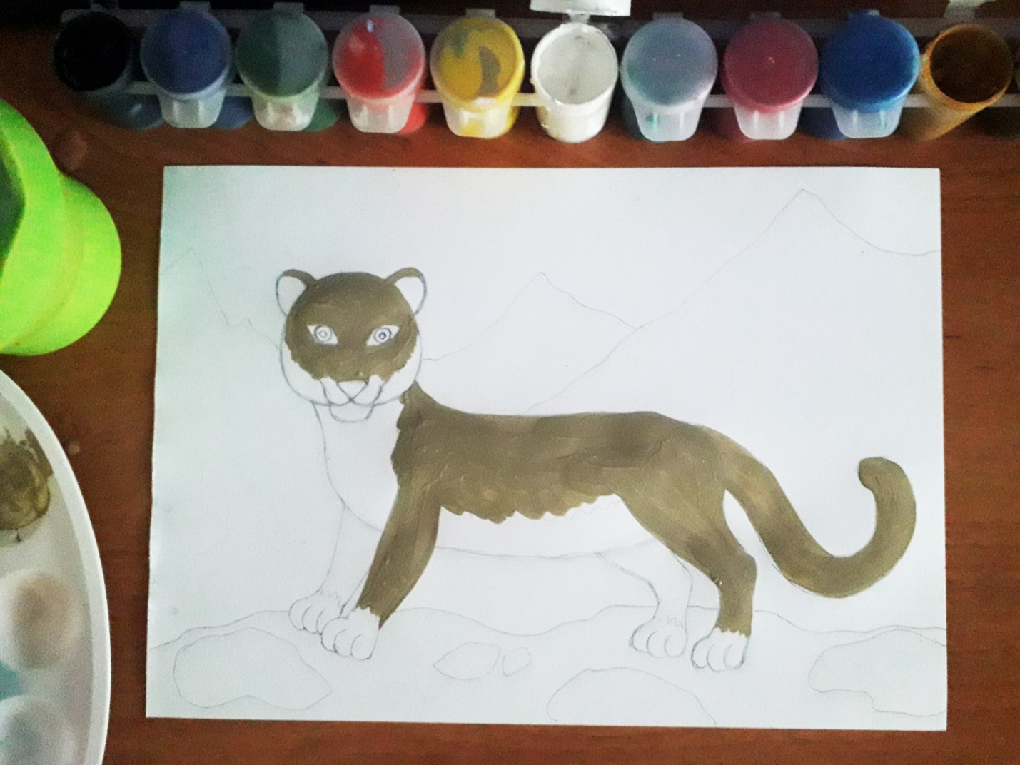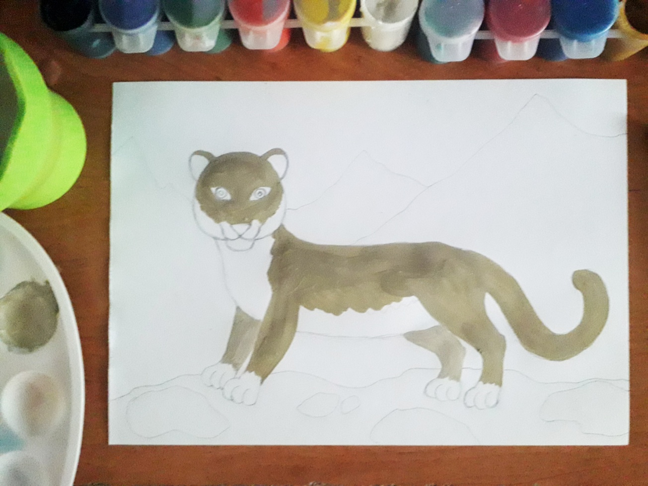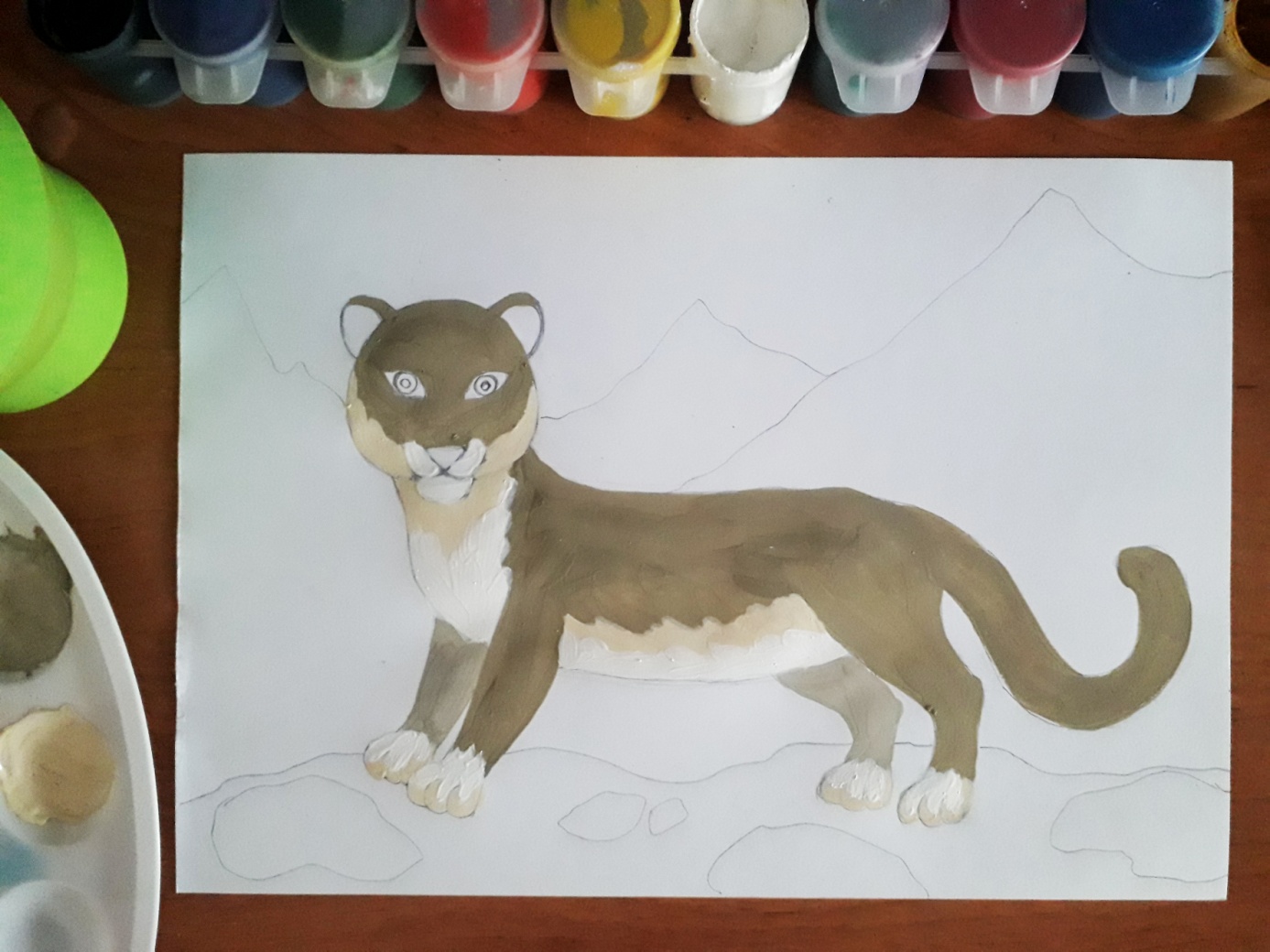 В данный оттенок добавляем ещё белого цвета и раскрашиваем дальше стоящие лапы. Делаем им светлее потому, чтобы они не сливались с лапами на переднем плане. Рис 16.