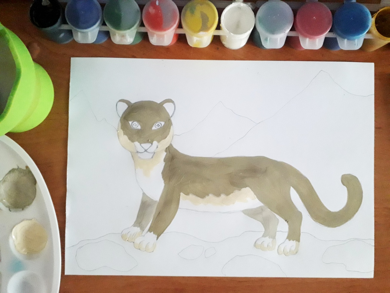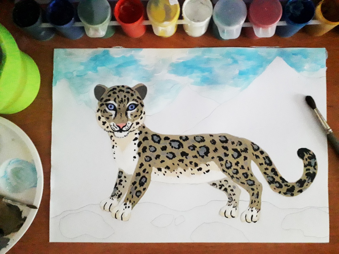 Наша картина со снежным барсом готова. Давайте полюбуемся – какой миленький и красивенький он у нас получился!!! Рис 29.